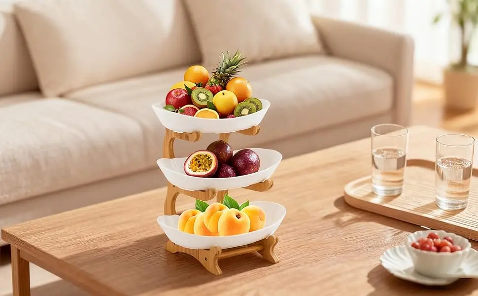 1* Three-tier Fruit Bowl with Bamboo Wood Stand
